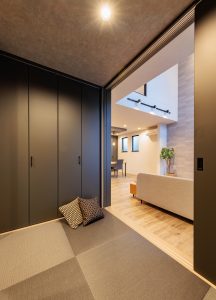 当社デザイナーが敷地に合わせ、プランを描くことにより時間によって代わる光の取り込み、建物内外のつながりによる広がる空間、美しさ、本物の素材が持つ色や肌触りなど、その場の条件を活かしデザインすることで、唯一無二の快適さを持つ邸宅を追及しています。