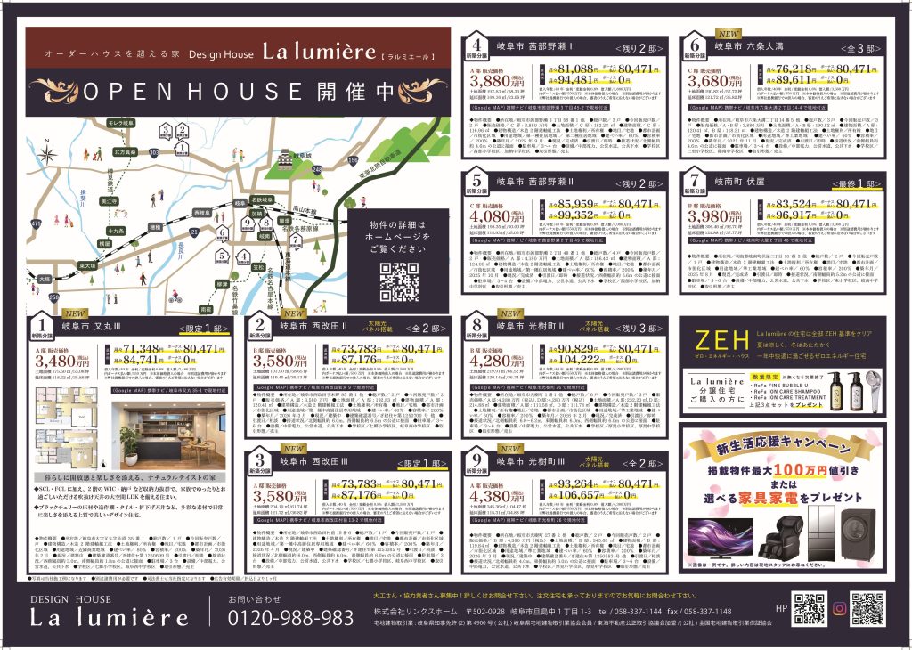 - 【 岐阜市茜部野瀬Ⅰ・Ⅱ・岐阜市六条大溝・岐南町伏屋・岐阜市光樹町Ⅱ・Ⅲ・岐阜市又丸Ⅲ・岐阜市西改田Ⅱ・Ⅲ 他 】その他、建築中物件も色々とご案内いたします!