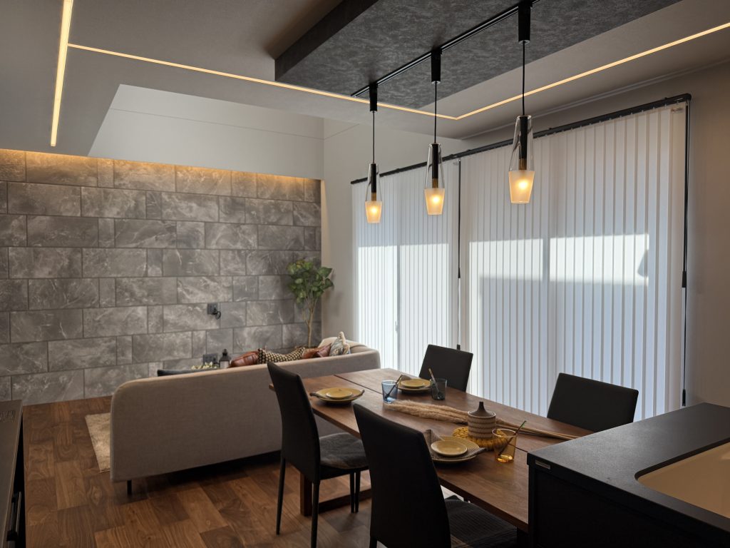 ◆備え付けの造作テーブルやカウンター、吹抜け天井、天井ジャストドア、タイル、アクセントクロス、ペンダントライト、アイアンなど各箇所にこだわりを散りばめました♪
