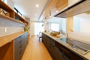 ◆奥様に大好評のペニンシュラキッチン♪タッチレス水栓、食器洗乾燥機を標準装備したオール電化住宅