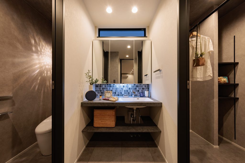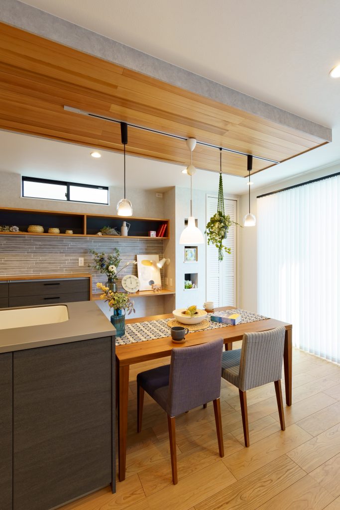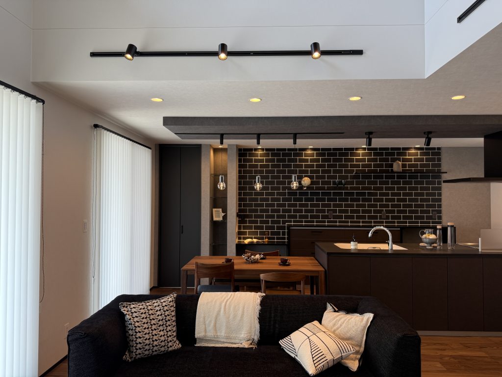 ◆床下げスペースを設けたLDKや開放感溢れる吹抜け天井、回遊動線、2WAYのSCL、ランドリースペース、ワークスペースなど多種多様な工夫を凝らした設計に、天井ジャストドア、お洒落な照明、タイル、アクセントクロス、アイアンなど家中にこだわり素材を散りばめました。