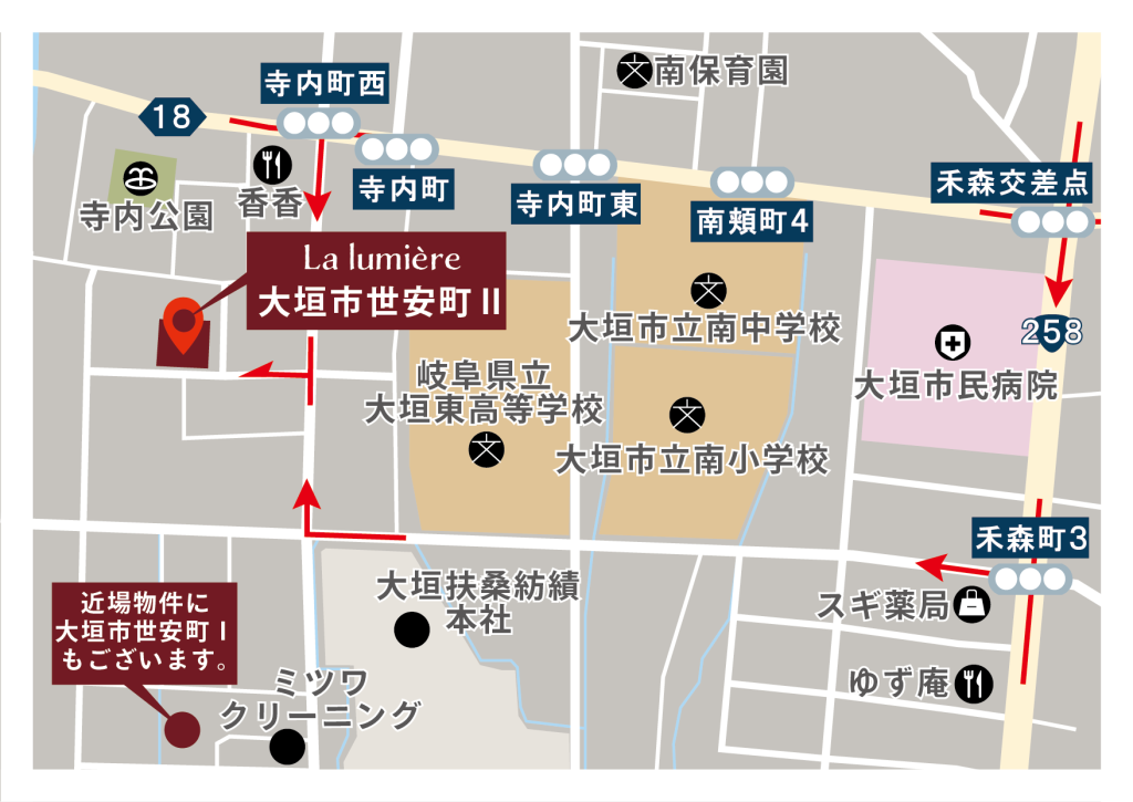 ◆【 携帯〈Google MAP〉ナビ設定:大垣市世安町1丁目68−1】で現地付近までお越しください。