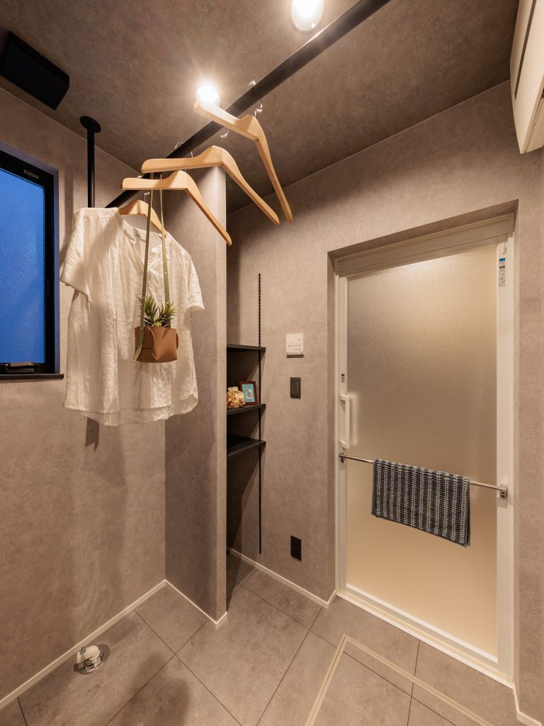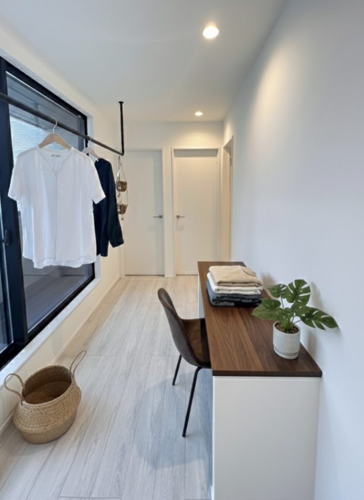 ◆家事がはかどるお洒落なアイアン物干しが設置されたランドリースペース♪