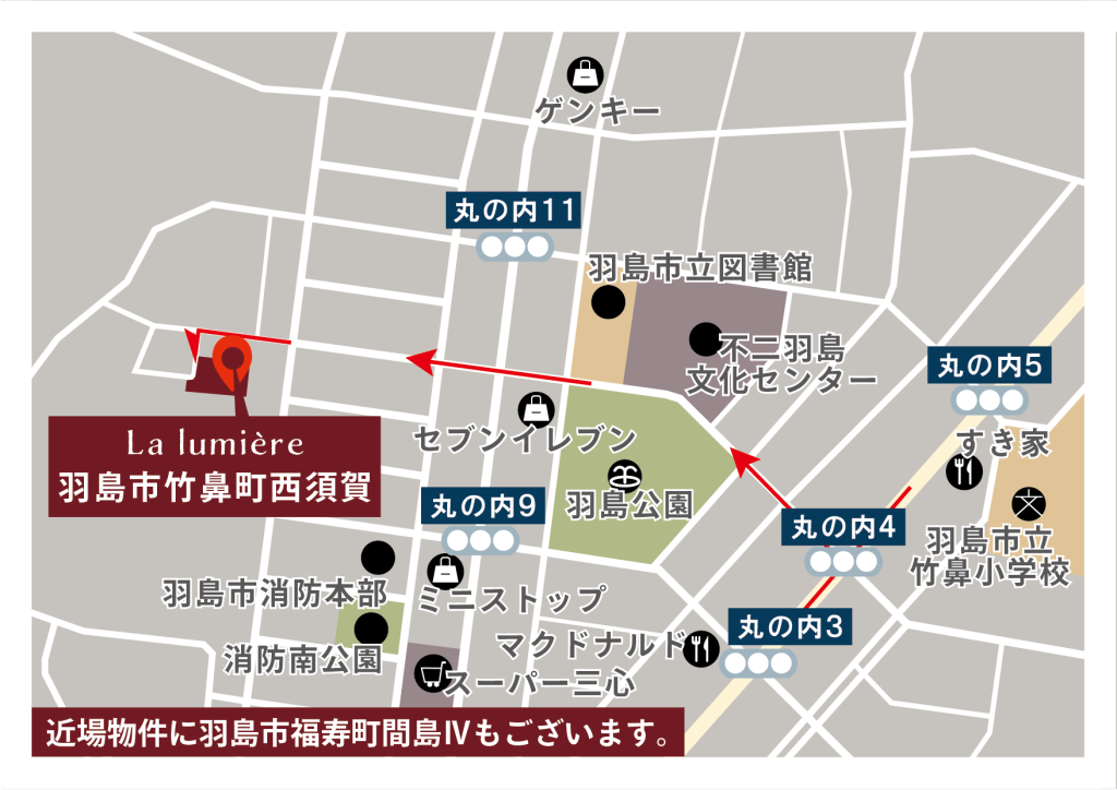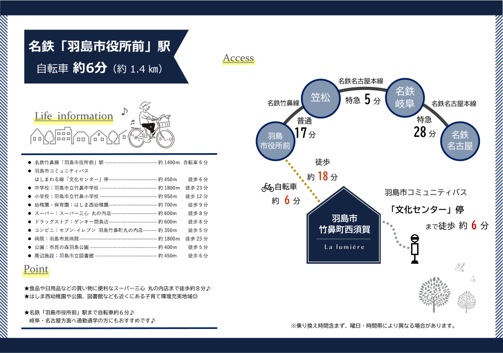 名鉄竹鼻線「羽島市役所前」駅・・・約1400m( 自転車約6分 )