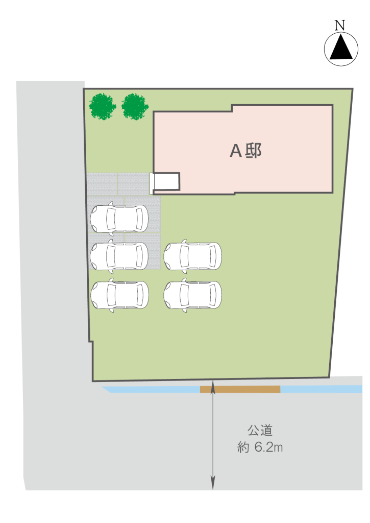 - 南側:公道 幅員 約6.2m / 西側:公道 幅員 約3.0m~3.6m