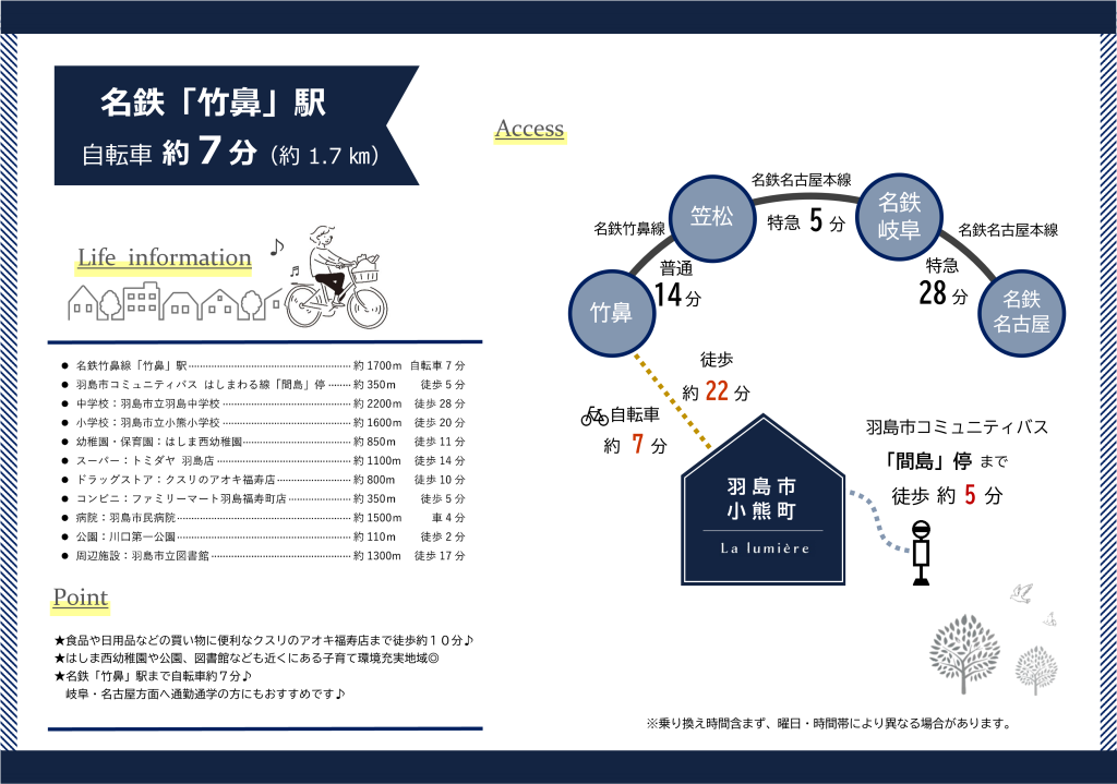 - 名鉄竹鼻線「竹鼻」駅・・・約1700m( 自転車約7分 )