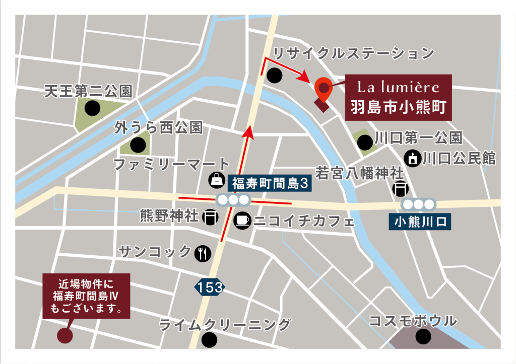 - 羽島市コミュニティバス はしまわる線「間島」停・・・約350m( 徒歩約5分 )